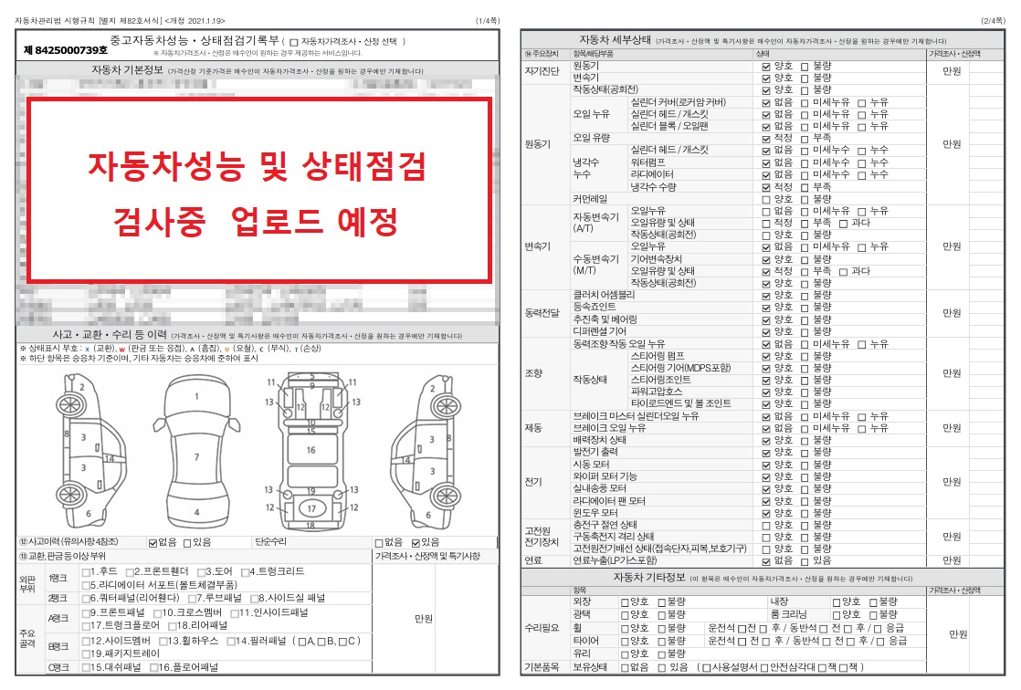 중고자동차 성능·상태점검기록부는 『자동차관리법 시행규칙 제120조』에 따라 발행되며,